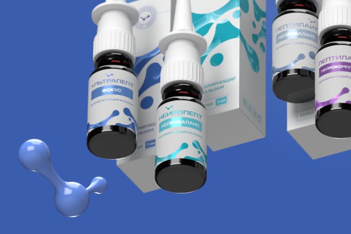 Задача стояла в формировании цельного визуального образа бренда пептидов: обновить логотип, разработать фирменный стиль и масштабируемую систему упаковки для пяти серий продукции. Важно было объединить под единым брендом несколько серий и форматов (капли и спреи), сохранить строгость и научность, но при этом сделать продукт современным, дружелюбным и заметным на полке и онлайн-витрине. Отдельным запросом стало создание 3D-визуализаций упаковки для сайта и маркетинговых материалов.