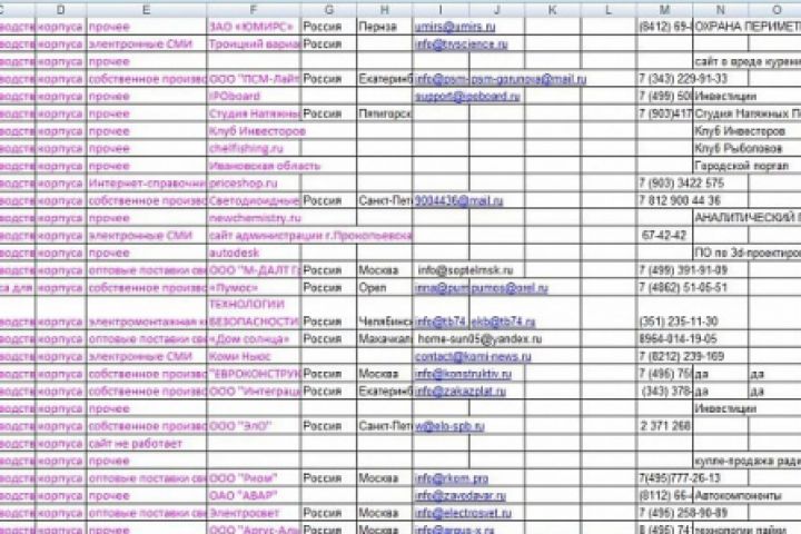 Сбор контактов организаций