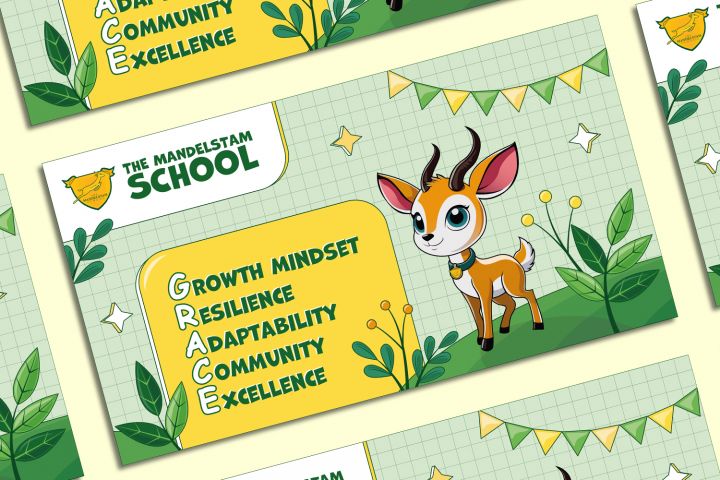 Клиент поставил задачу разработать баннер для школы The Mandelstam School в фирменной цветовой гамме, где необходимо разместить важные смыслы для учеников данной школы. Баннер является напоминанием детям о том, что у них есть качества: постоянно развиваться и учиться новому, стойкость, адаптивность, поддержка сообщества, стремление делать лучшее, что можешь.
