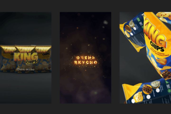 Создать яркий, динамичный и современный рекламный видеоролик для бренда KING Chips. Необходимо было визуально подчеркнуть вкус продукта, выделить упаковку и фирменный стиль, а также сделать ролик легко адаптируемым под соцсети и digital-кампании.