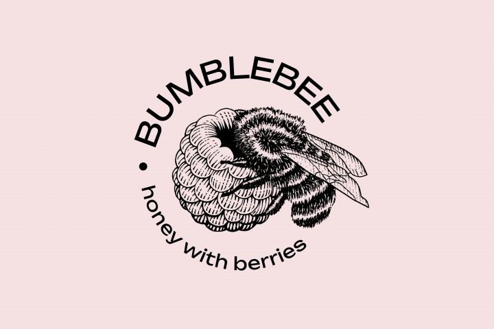 Логотип гравюра шмель на малине