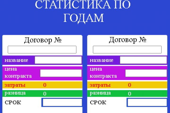 поля подсчета разницы и затрат на страницах с контрактами