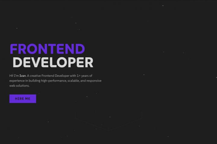 Нужно было создать портфолио-сайт с чистой анимацией, адаптивной вёрсткой и быстрым рендерингом. Основная цель — показать работы, сохранить минималистичный дизайн и обеспечить быструю загрузку.