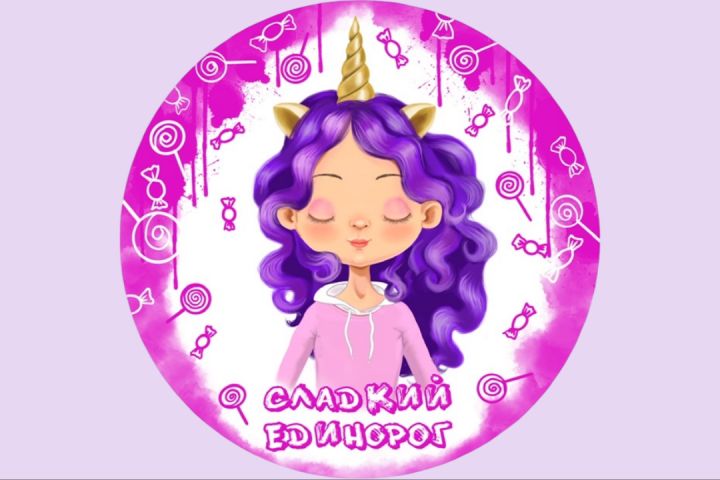 Разработка ключевой иллюстрации-логотипа для бренда натуральных сладостей «Сладкий Единорог». В основе — образ милой девочки в стилизованном образе единорога, соединяющий волшебство сказки и идеи натуральности.