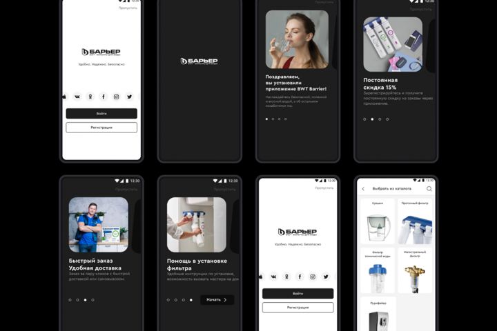 Мы разработали удобный и технологичный интерфейс для экосистемы фильтров BWT Barrier — от подбора картриджей до отслеживания ресурса и заказа обслуживания. Приложение направлено на то, чтобы пользователь чувствовал заботу бренда, получал подсказки вовремя и мог управлять всей бытовой фильтрацией в одном месте. Особое внимание уделено простоте сценариев, визуальной чистоте и понятному онбордингу.