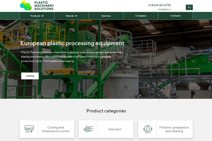 Компания находится в Сербии и поставляет оборудование по всему миру. На сайте комплексно представлено несколько европейских брендов и их каталоги оборудования. Проделана большая работа по оформлению страниц на двух языках.