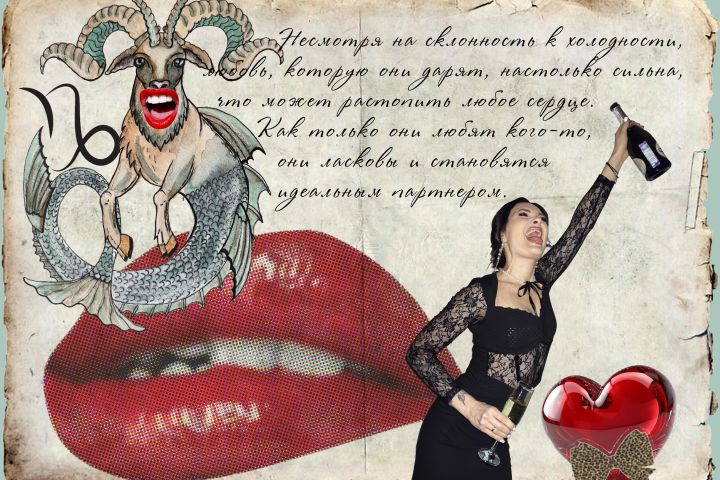 Разработать открытку к дню рождения в виде коллажа, необходимо упомянуть что именинница козерог и раскрыть их качества