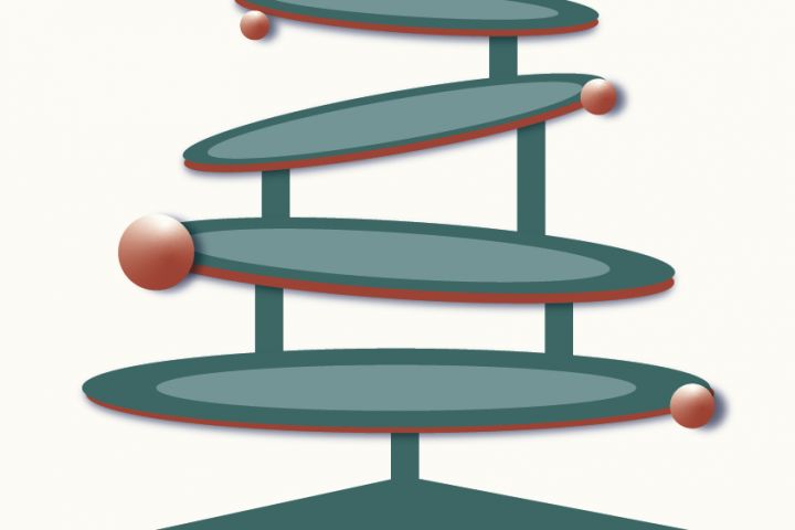 Решением стал векторный А3 плакат, включающий в себя елку собранную из эллипсов, 4 цветную палитру, применил градиент для придания акцента, и на выходе получил минималистичный плакат.