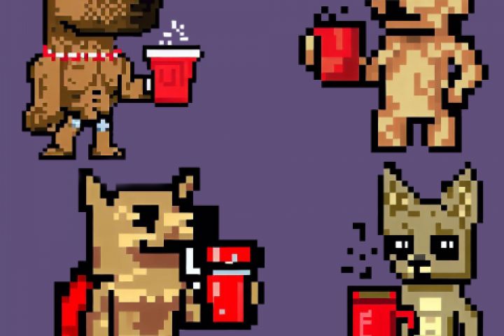 Разработано 4 варианта пиксельарта для игры про собаку с супер способностями которые открываются когда пес пьет кофе.