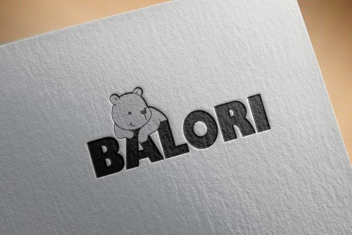 Нарисовала милого мультяшного мишку, сидящего прямо на буквах названия «Балори», интегрировав персонажа в слово таким образом, чтобы он выглядел его органичной частью. Использовала мягкие округлые формы, пастельные цвета и детализированную прорисовку мордочки для передачи доброго характера.