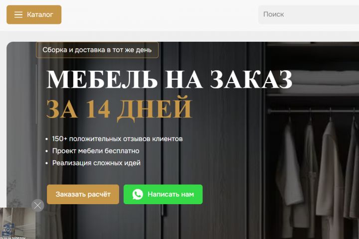 Новый сайт стартовал с нуля трафика. Нужно было быстро набрать посещаемость с поиска и лиды по тематике гардеробных комнат.