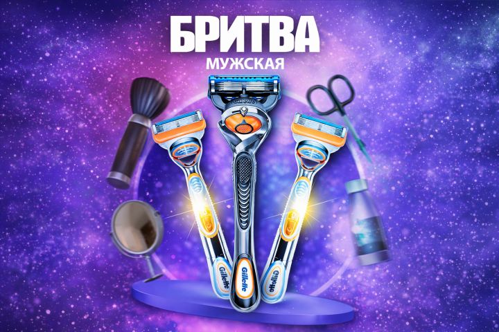 Подчеркнуть качество и технологии — использовать визуальные коды, ассоциирующиеся с профессиональным уходом: многослойные лезвия, эргономичный дизайн, глянцевые поверхности.