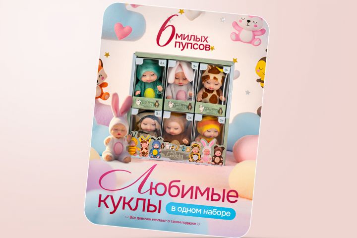 Все варианты милые и рассчитаны на женскую и детскую аудиторию, т.к. вряд ли мальчики играют в куклы и уж тем более вряд ли взрослые мужчины покупают на маркетплейсах куклы своим дочкам (хотя наверняка есть такие)😉