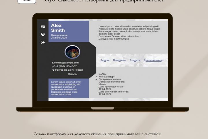 Создал платформу для делового общения предпринимателей с системой профилей.