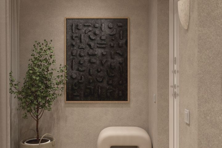полный дизайн проект интерьера современной прихожей в стиле ваби-саби под ключ. ведомость с материалами, чертежи и схемы для ремонта, панорамный 3д обзор в подарок