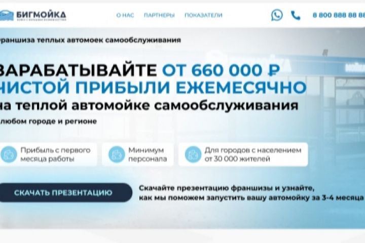 Лендинг для сети автомоек самообслуживания Бигмойка