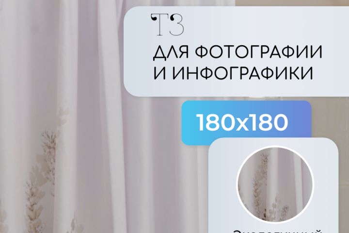 Клиент поручил разработать подробное техническое задание (ТЗ) для фотосъемки и создания инфографики по товару «Штора для ванной комнаты». Основная цель задания — подготовить качественные изображения и графическое сопровождение, которое наглядно продемонстрирует свойства и особенности товара, повысит доверие покупателей и стимулирует продажи на Wildberries.