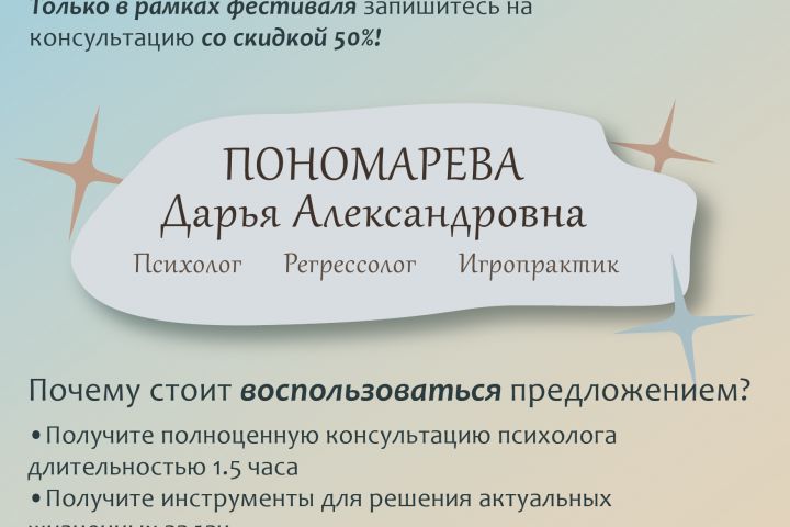 Задача: создать дизайн флаера в светлых песочно-голубых тонах о предоставлении скидки на услуги психолога