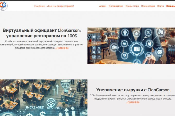 ClonGarson способен принимать тысячи заказов одновременно через интерактивное онлайн-меню. Гости ресторана сканируют QR-код на столе и оформляют заказ, который сразу отображается на мониторах персонала: кухни, официанта, кассы и управляющего. Каждый этап заказа сопровождается уведомлениями для гостей и сотрудников. Все заказы фиксируются, исключая ошибки и хищения, а скорость обслуживания растет за счет мгновенной передачи заказа на кухню.