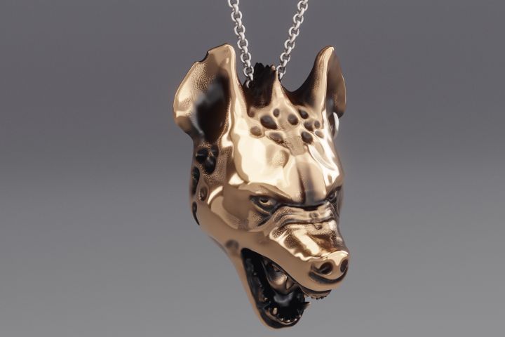 Скульпт головы гиены в виде кулона для последующей 3д печати, плюс визуализация.