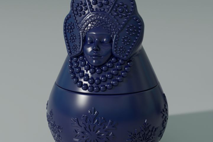 Сделать модель подсвечника в форме матрешки в кокошнике и украшенной снежинками