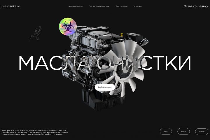 Макет сайта по продаже маслоочистителей для авто, мото, гидротранспорта