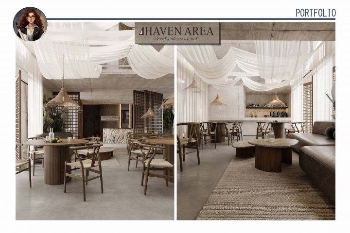 Концепция интерьера кафе комплекса апартаментов на Бали HAVEN AREA.