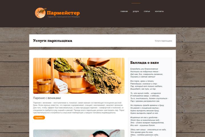 Официальный сайт Содружества парильщиков Санкт-Петербурга. Сайт представляет услуги парильщиков, позволяет ознакомиться с информацией, выбрать услугу или подать заявку онлайн.
