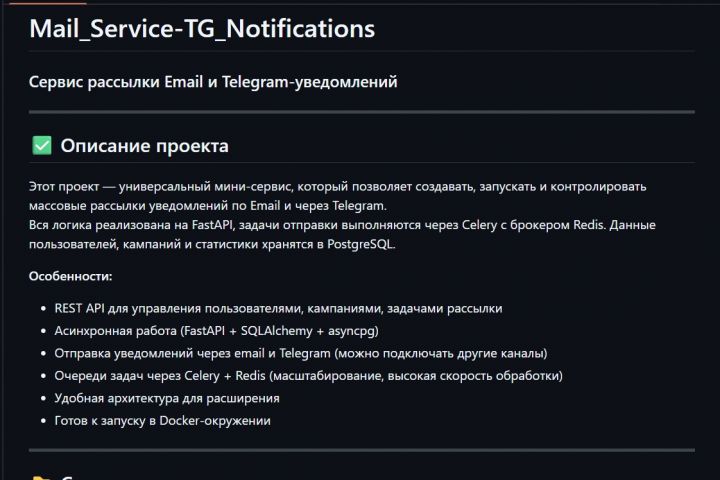 Этот проект — универсальный мини-сервис, который позволяет создавать, запускать и контролировать массовые рассылки уведомлений по Email и через Telegram.