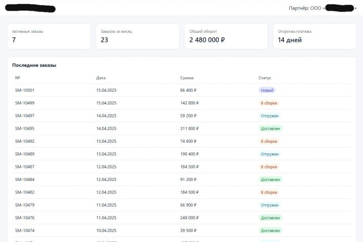 Количество обращений к менеджерам снизилось, партнёры стали быстрее оформлять повторные заказы. Компания использует личный кабинет как основной канал работы с оптовыми клиентами.