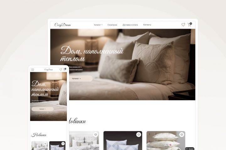 Прототип интернет-магазина постельного белья CozyDream с возможностью удобного выбора размера и цветов товара, а также гибкими настройками доставки.