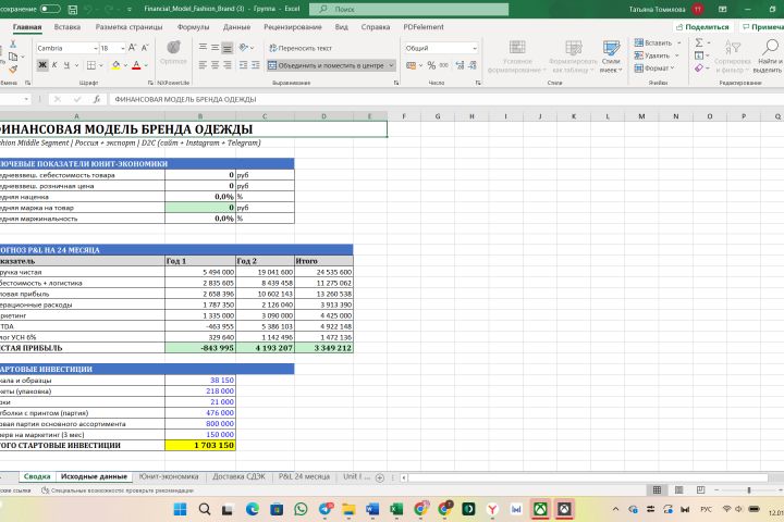 Эксель: финансовая модель для российского бренда одежды, юнит-экономика