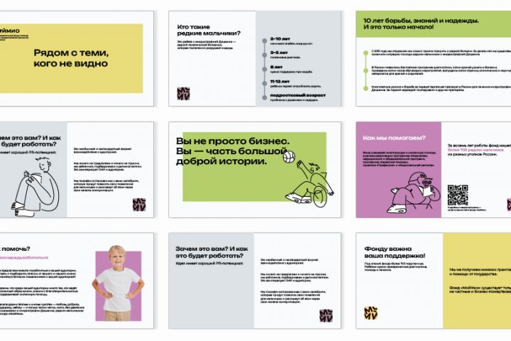 Презентация для благотворительного фонда «МойМио» — это инструмент привлечения партнёров и единомышленников. В ней кратко и понятно показано, чем занимается фонд, какую реальную помощь он оказывает и почему сотрудничество с ним имеет значение. Акцент сделан на доверии, прозрачности и живых результатах работы, чтобы потенциальным партнёрам было легко принять решение и включиться в совместные проекты.