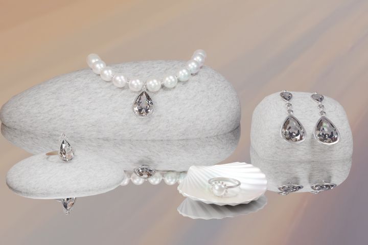 Моделирование и рендер комплекта украшений с камнями и жемчугом