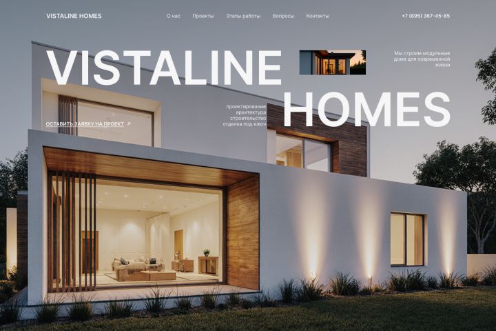 Я создавала лендинг для компании, которая строит модульные дома. Основная задача сайта — просто и наглядно показать продукт и помочь клиенту принять решение.
