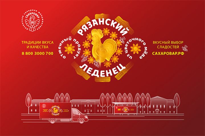 Разработать наружную рекламу для Рязанского леденца, который производит Рязанская Сахарная Мануфактура Сахаровар. Сделать акцент на то, что в приготовлении леденца используют мед.