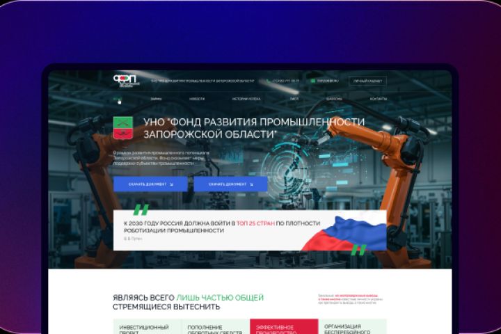 Мы реализовали разработку корпоративного сайта для Фонда развития промышленности Запорожской области — некоммерческой организации, созданной для поддержки промышленных предприятий, модернизации производства и содействия устойчивому социально-экономическому развитию региона. Сайт стал основным инструментом коммуникации фонда с предприятиями, инвесторами и другими заинтересованными сторонами.