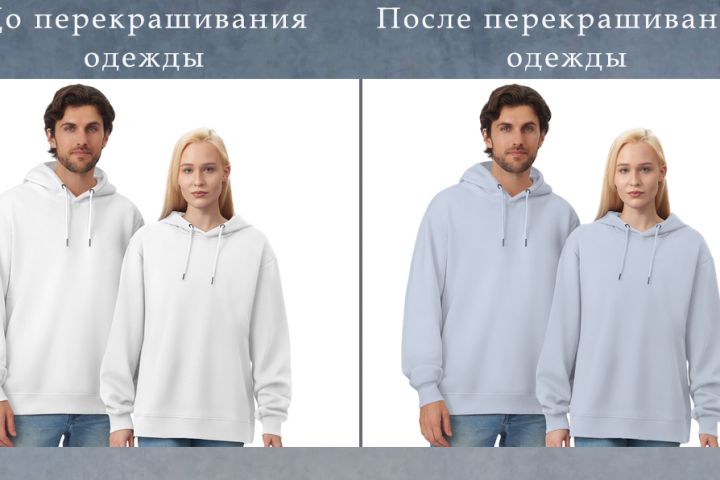 Необходимо было перекрасить одежду на моделях для дальнейшего создания карточек товара для маркетплейсов. Задача была выполнена со 100% совпадением цвета на фотографии и оригинале.