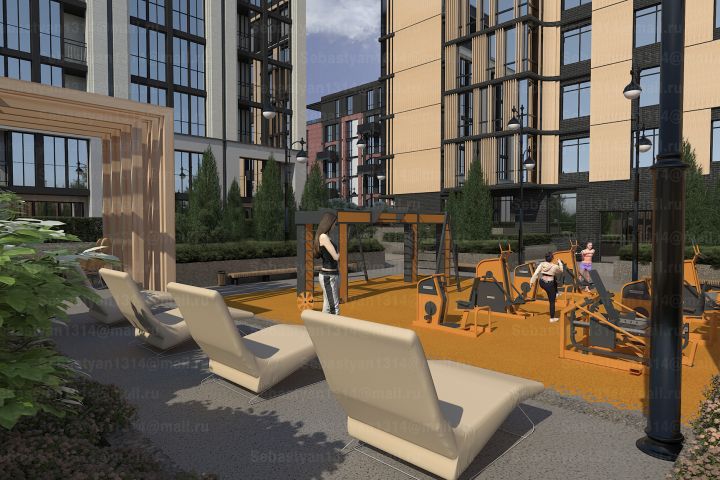 Разработка дизайна и визуализация комплексов зданий с парковой зоной у...