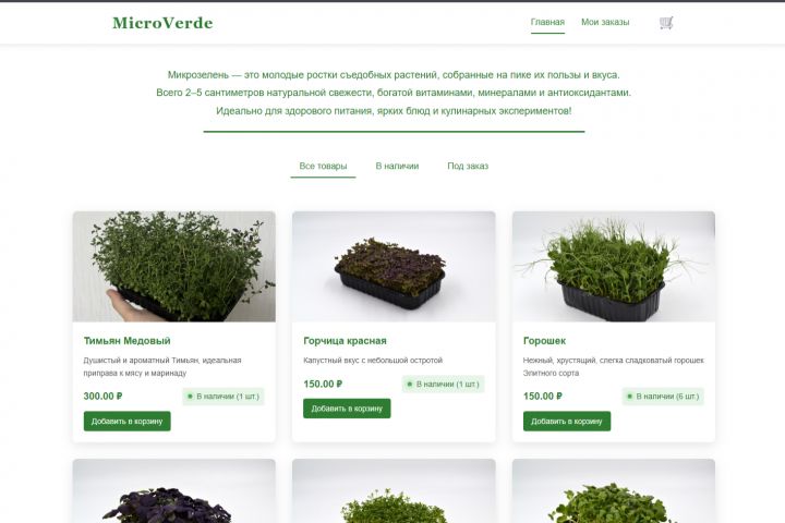 сделал сайт для продажи микро зелени для кафе или ресторанов. была сделана корзина и возможность заказать , сообщения о заказе приходят в админ панель и в дискорд