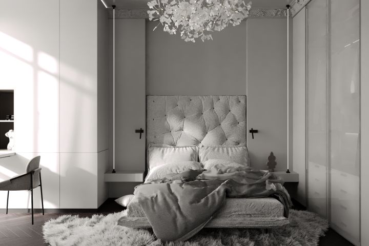 Интерьер спальни в серых тонах