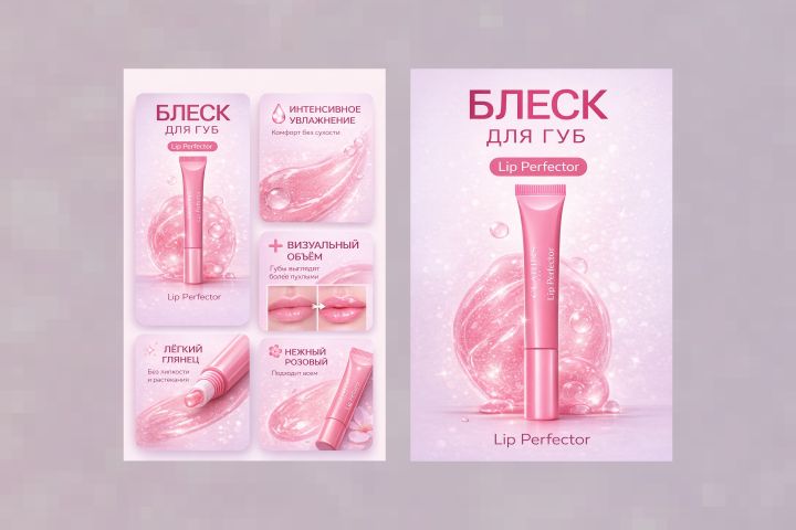 Инфографика для блеска. Задача: сделать первый слайд карточки товара, чтобы привлекал внимание и отображал главные характеристики товара