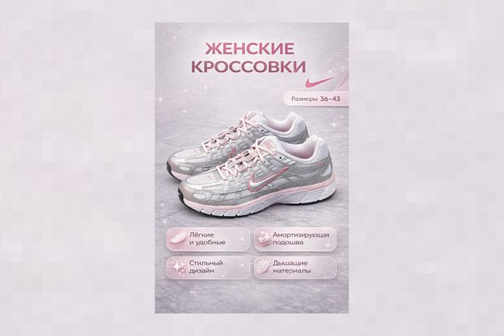 Инфографика для кроссовок. Задача: сделать первый слайд карточки товара, чтобы привлекал внимание и отображал главные характеристики товара
