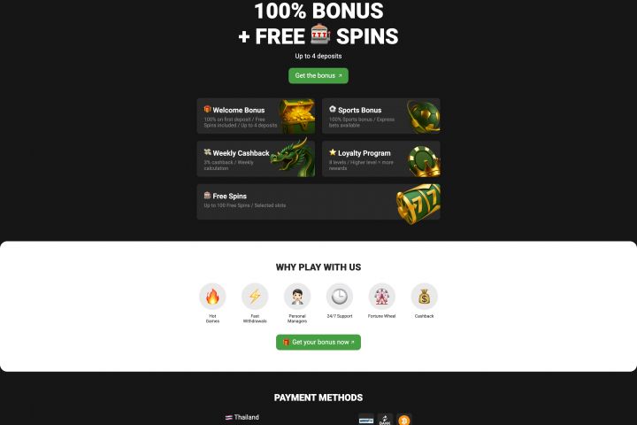 В рамках проекта был разработан продающий лендинг онлайн-казино, ориентированный на конечного пользователя. Основная задача — максимально быстро вовлечь игрока, показать ценность бонусов и довести до первого депозита.