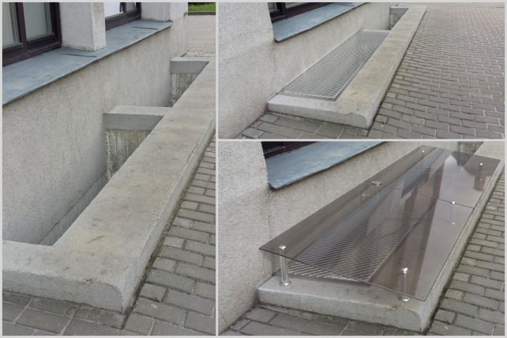 Клиенту требовалось визуально показать, как будет выглядеть стеклянное защитное покрытие для приямка у фасада здания. Важно было не просто создать 3D-модель, а максимально точно вписать её в реальное фото окружение, чтобы заказчик и подрядчики могли оценить внешний вид, пропорции, крепления и общее соответствие архитектуре объекта. Основная цель — наглядная и реалистичная визуализация будущего решения для презентации и согласования.