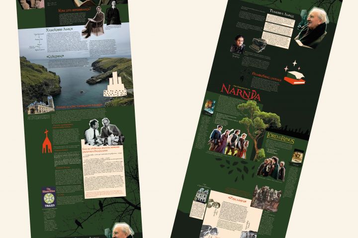 В результате получился цельный, визуально выразительный лонгрид с продуманной структурой и атмосферным оформлением. Дизайн подчёркивает связь между мирами Толкина и Льюиса и делает материал удобным для восприятия даже при большом объёме текста.