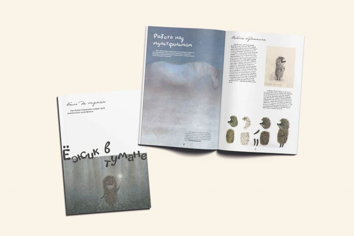 Проект был посвящён журнальной верстке статьи о культовом советском мультфильме «Ёжик в тумане». Задачей было оформить материал так, чтобы подчеркнуть художественную и культурную ценность анимационного фильма, а также показать, как мультипликация вышла за рамки детского развлечения и стала формой искусства.