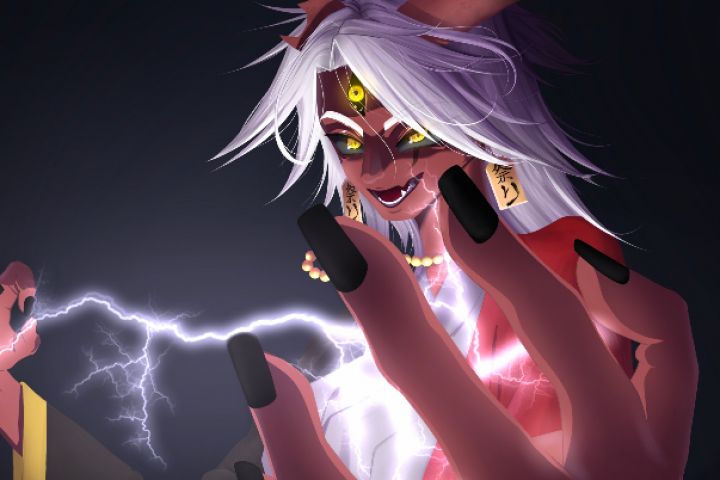 Они - существо японской мифологии, вид екаев, имеющих суть демонов-людоедов. Однако, на данной работе он хочет сразиться на смерть