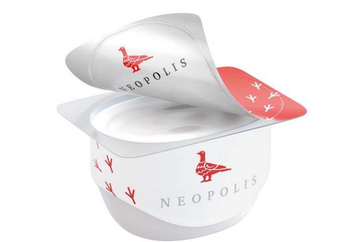 3D-визуализация упаковки на примере дойпака и стаканчика с йогуртом, демонстрирующая технологические возможности типографии: печать на внутренней и внешней стороне крышки, голографию, тиснение, лакирование, UV-лак и др.