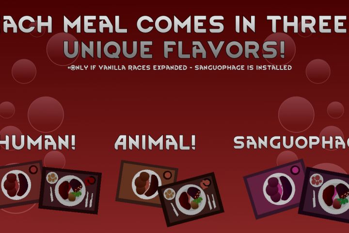 Задача была сделать несколько иллюстраций в общей тематике(блюда из крови для вампиров), которые демонстрируют новые предметы, добавляемые модом, а также даёт им краткое описание.